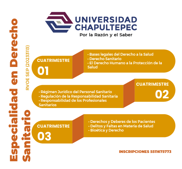 Derecho Sanitario Es un programa académico de nivel superior orientado a la formación de profesionales con conocimientos sólidos en el ámbito jurídico-sanitario, capaces de interpretar, aplicar y vigilar el cumplimiento de las normas que regulan la prestación de servicios de salud. A lo largo de la especialidad, el estudiante adquiere una formación integral en áreas como la responsabilidad profesional médica, los derechos de los pacientes, la regulación de insumos y la legislación de los sistemas de salud. Además, desarrolla habilidades analíticas, de consultoría y de gestión de riesgos para desempeñarse con responsabilidad y ética en el sector.